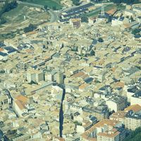 En 1035, Ramiro I instala, en Jaca, la capitalidad del pequeño reino de Aragón. Poco años después, en 1042, el obispado se fijó allí. Hasta finales del siglo XI, se lleva a cabo la repoblación de Jaca en barrios. En 1077, el rey Sancho Ramirez otorga su fuero a la villa de Jaca convirtiéndola en ciudad. La ciudad se desarrolla hasta el año 1096, fecha en la cual Huesca llega a ser la nueva capital del reino de Aragón. A pesar de la atención particular del rey por Jaca, la densidad de población nunca será muy elevada a lo largo de su historia. Al final del siglo XI, la ciudad de Jaca tenía dos burgos : el "burgo San Nicolás" y el "burgo Novo". Al construir la muralla de la ciudad, el burgo San Nicolás permaneció casi todo al interior del cerco, mientras que el burgo novo quedó fuera de los muros. Su situación y su historia lo relacionan con el recorrido procedente de Francia, y por consiguiente con la peregrinación de Santiago. En el siglo XII, el Hospital de Santa Cristina de Somport tenía muchos bienes en Jaca, de los cuales un palacio en el Burgo nuevo. La cofradía de Santa Cristina se reunía cerca de la Iglesia de Santiago. La ciudad de Jaca fue incendiada varias veces durante los siglos XI y XII. Cuando se edificará la Ciudadela, en 1596, el burgo nuevo con sus veinte casas y su iglesia, será totalmente destruído. Actualmente, en la ciudad se notan tres unidades : la ciudad medieval, tiene un contorno claramente determinado por las murallas, ya que permaneció encerrada por un importante conjunto amurallado hasta 1917, fecha en la que la muralla fue derribada; la ciudadela, fortaleza militar construida al final del siglo XVI; los barrios nuevos edificados a principios del siglo XX, según los proyectos de Lamolla.