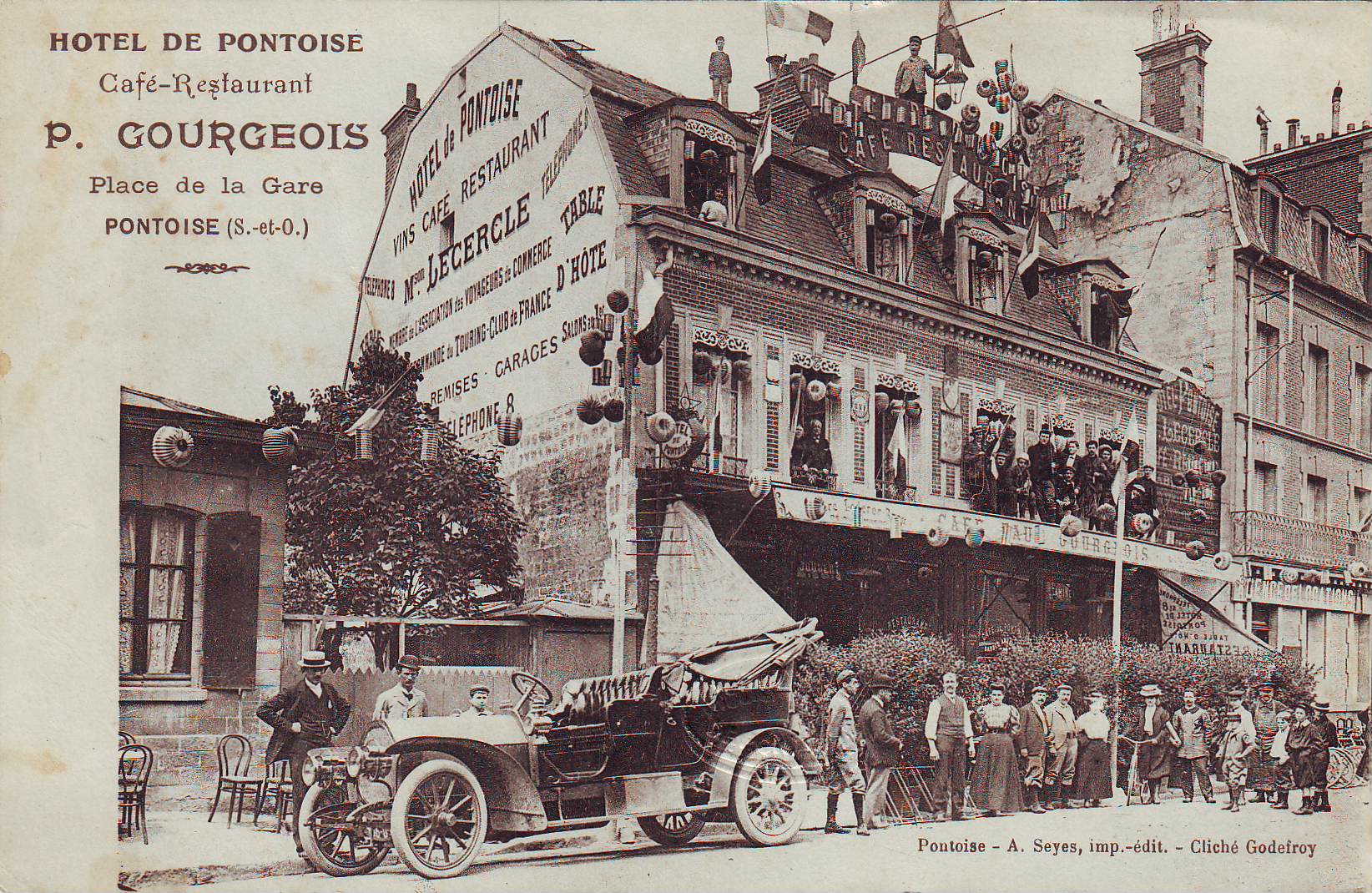 Hôtel de Pontoise, café-restaurant tenu par Paul Gourgeois, place de la gare : prise de vue lors du 14 juillet
