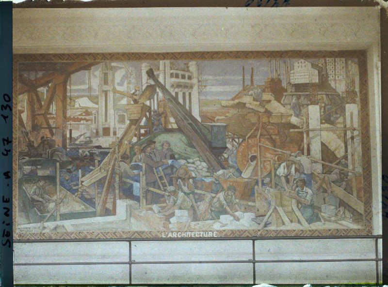 France, Paris, Exposition des Arts Décoratifs, La Cour des Métiers, le panneau de l'architecture