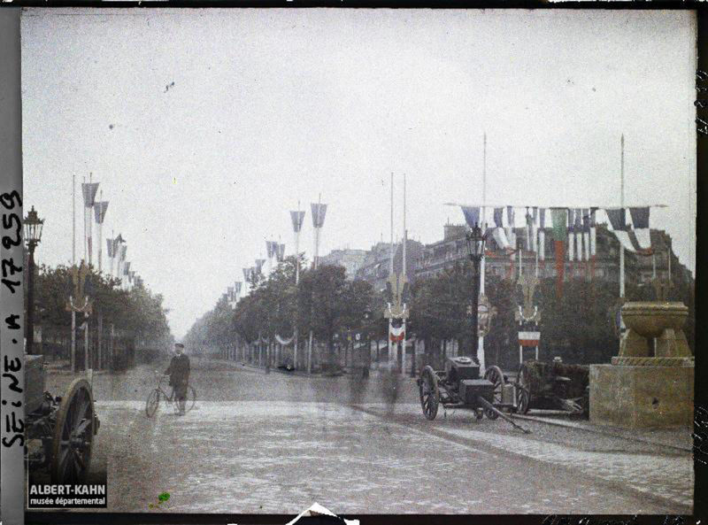 L'avenue de la Grande-Armée décorée de drapeaux et de canons pour les fêtes de la Victoire des 13 et 14 juillet
