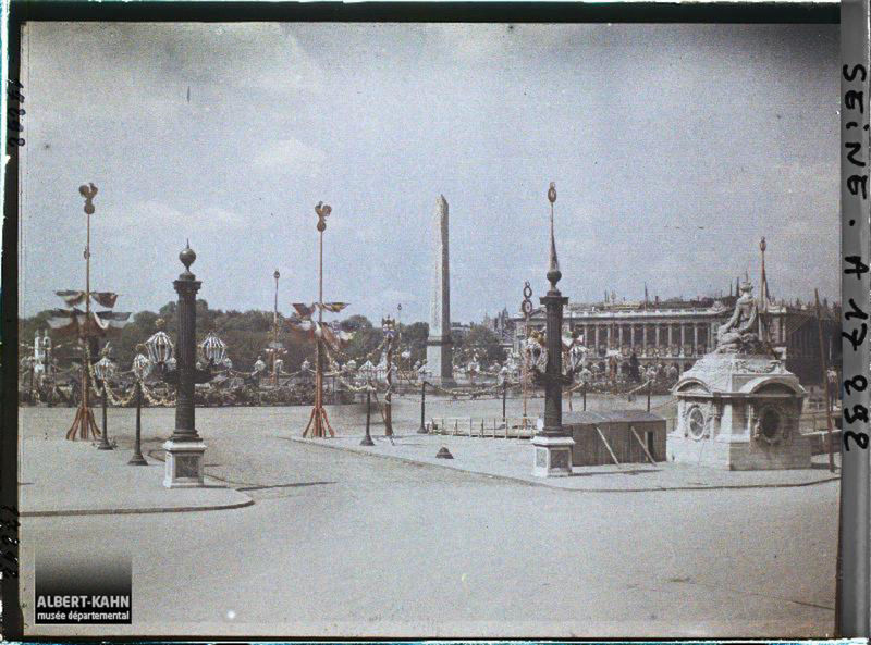 La place de la Concorde décorée pour les fêtes de la Victoire des 13 et 14 juillet