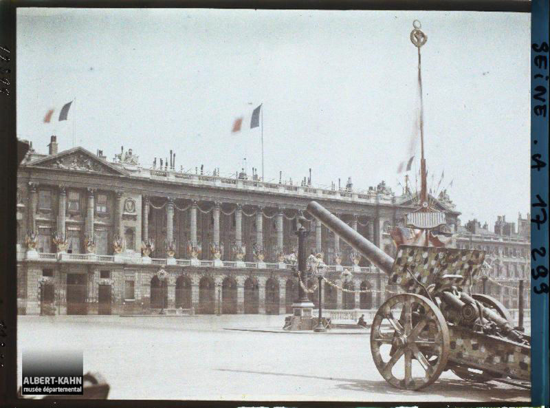 L'hôtel de la Marine décoré pour les fêtes de la Victoire des 13 et 14 juillet, place de la Concorde