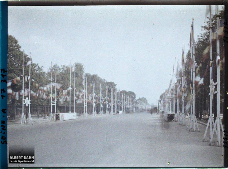 L'avenue des Champs-Elysées décorée pour les fêtes de la Victoire des 13 et 14 juillet