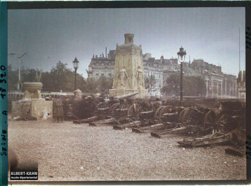 Le Cénotaphe en hommage aux morts pour la patrie et les canons exposés pour les fêtes de la Victoire des 13 et 14 juillet place de l'Etoile