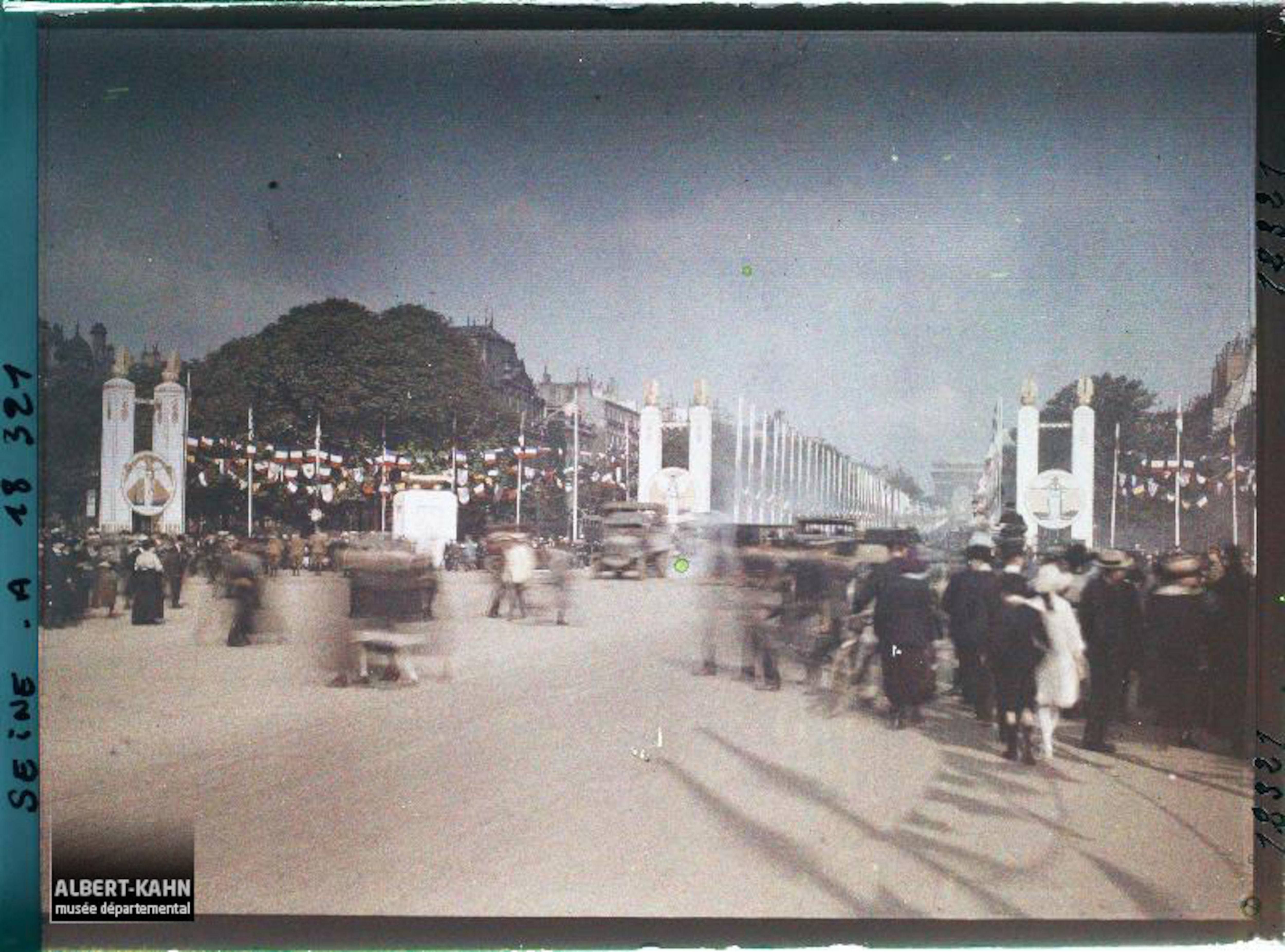 L'avenue des Champs-Elysées décorée pour les fêtes de la Victoire des 13 et 14 juillet 1919