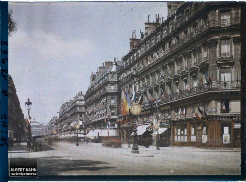 L'avenue de l'Opéra décorée pour les fêtes de la Victoire des 13 et 14 juillet 1919